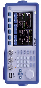 Генераторы представляют собой лабораторные многофункциональные измерительные приборы, принцип действия которых основан на технологии прямого цифрового синтеза, позволяющего получать стабильные, высокоточные сигналы с низким коэффициентом нелинейных искажений практически любой формы. На передней панели генератора находится цветной жидкокристаллический дисплей, состоящий из двух частей: в верхнем окне отображается форма генерируемого сигнала, в нижнем окне -его параметры. Справа от дисплея в генераторах серии 3407 находится вертикальный ряд функциональных кнопок, с помощью которых пользователь может выбрать различные формы генерируемых функций и типы функций модуляции, а под дисплеем расположен горизонтальный ряд кнопок управления меню, используемых для настроек параметров генераторов. В нижней части панели расположены выходные разъемы двух каналов и разъем для USB-накопителя.